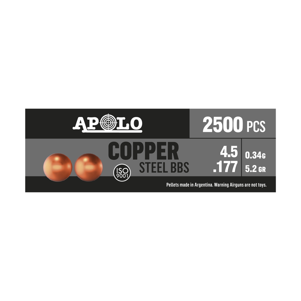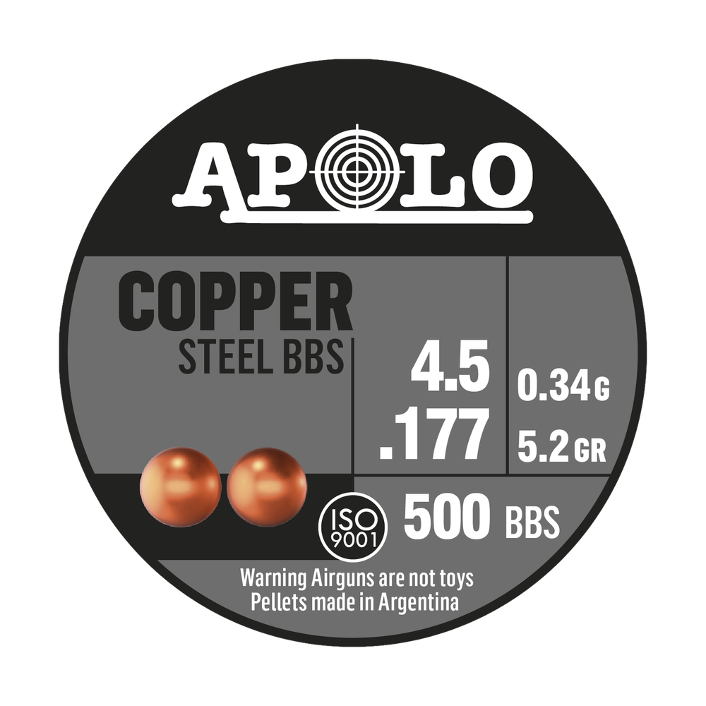 Balines de acero recubiertos de cobre, con un 20% más de dureza. Cuentan con una superficie lisa que mejora ampliamente su agrupación, su penetración e impacto. Exclusivo para pistolas y rifles CO2.