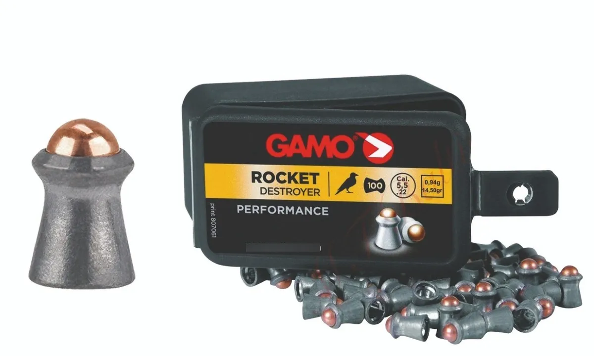 El moderno balín Rocket ha sido diseñado con la última tecnología. Su cabeza es de acero y su cuerpo de plomo, lo que consigue combinar las ventajas de ambos materiales. Se trata de un proyectil de máximo rendimiento que goza de un excepcional equilibrio entre precisión, alta velocidad, y gran expansión, incluso a largas distancias. ideal para caza.