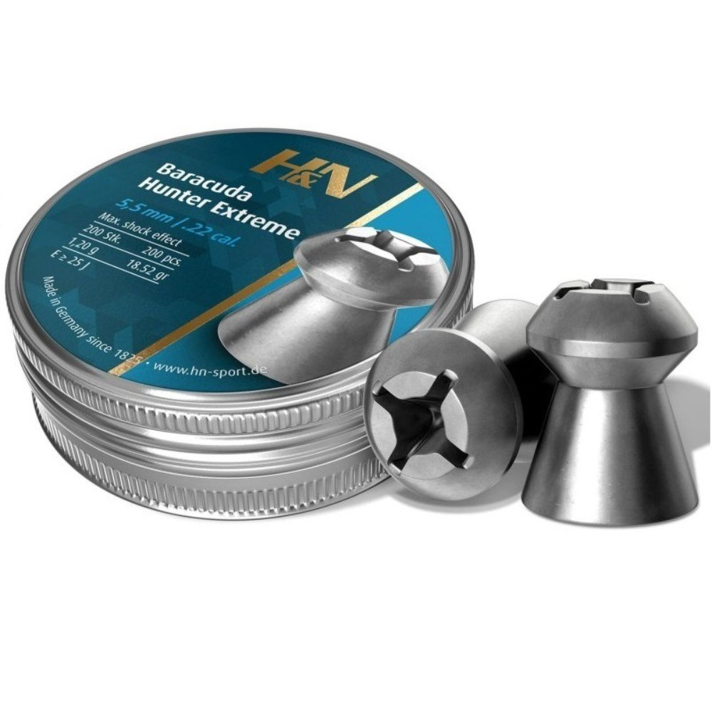 Balín pesado, de precisión excepcional para distancias largas. Punta hueca profunda, en forma de cruz, para un gran efecto de choque y transferencia energética rápida. Propiedades aerodinámicas óptimas para alta precisión. Liso.Caza, Hasta 50 metros de distancia Energía de orificio recomendada 25 J 18.5 ft.lbs Calibre: 5.5 (.22) Peso: 1,21 g 19.09 gr Cantidad por lata: 200 unidades