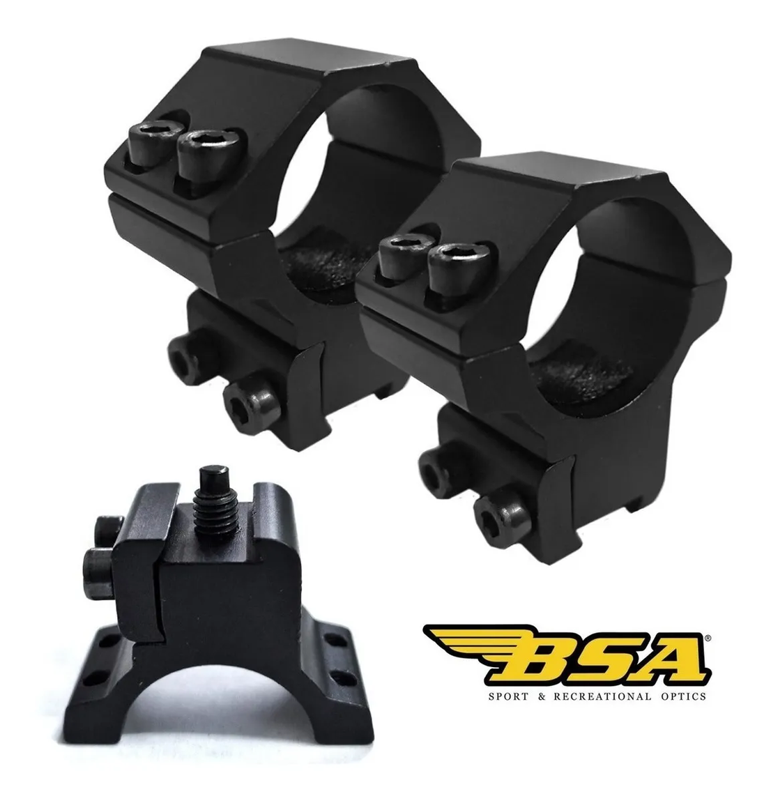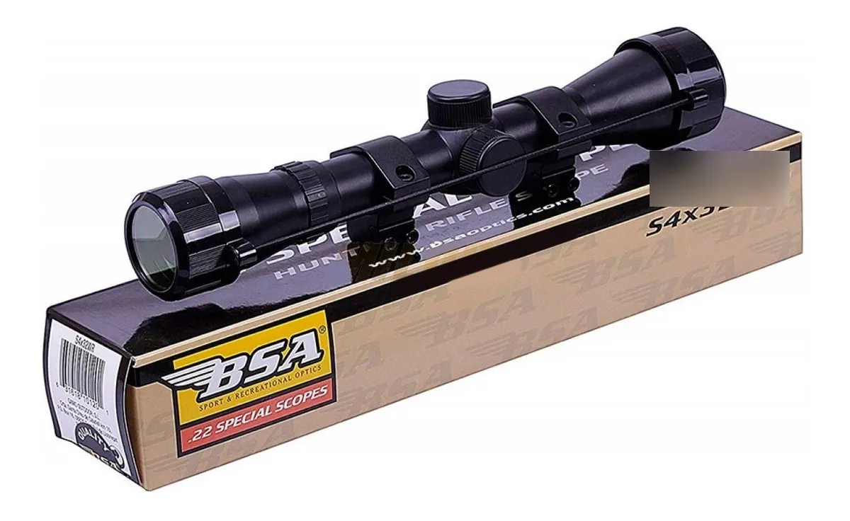 Visor BSA con reticula Mil Dot y montura anillas incluidas. Torretas TONIX Tubo (in. / mm): 1" Longitud: 30 cm Peso: 390 g Reticula Mil dot Montura anillas, 11mm Correción dióptrica, en objetivo. Torretas TONIX con clicks de 1/4 MOA