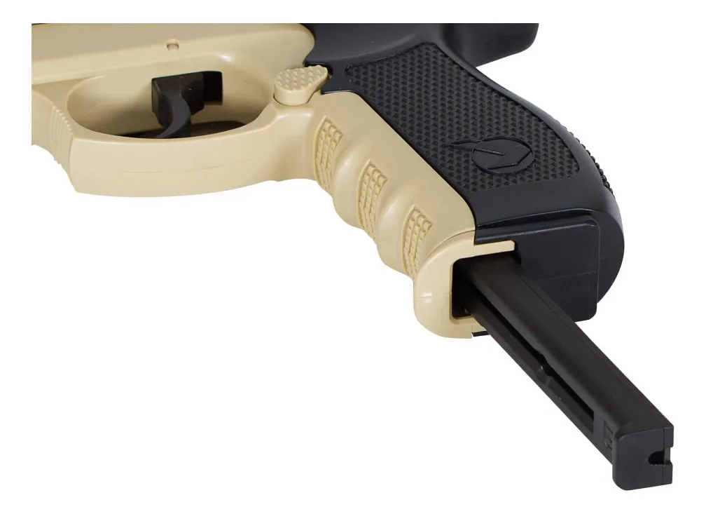 Nos complace presentarte una nueva versión de la GP-20 Combat de Gamo: la GP-20 Combat Desert Sand. ¡Esta pistola excepcional es una máquina de lateo! Es una pistola de estilo táctico ergonómica, realista y atractiva que dispara BBs de calibre 4.5.
