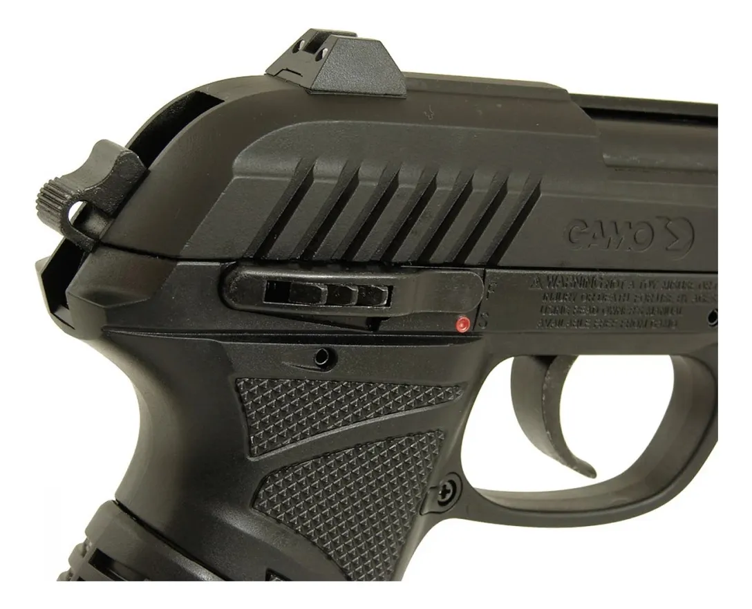 La pistola Gamo de aire comprimido PT-85 Blowback de C02 es uno de los grandes éxitos de ventas de Gamo a nivel mundial, una pistola semiautomática de lo más realista con su sistema de corredera móvil “blowback”, disparar con la PT-85 es una auténtica pasada y transmite muy buenas sensaciones conseguidas por el movimiento de la corredera y el sistema de disparador de simple o doble acción. Una pistola que funciona con botellas de 12gramos de CO2 y dispone de un curioso cargador doble reversible que sostiene un tambor con 8 disparos a cada lado con un total de 8+8=16 disparos. La precisión de esta pistola es admirable gracias a su cañón estriado el cual puede disparar balines de plomo. Cuerpo y empuñadura de polímero acabado negro mate, corredera metálica, seguro manual y un práctico rail picatinny táctico frontal. Gamo PT-85 Blowback una pistola de C02 con peso y medidas estándar con la que disfrutará toda la familia!