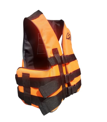 Disponible del talle XXXL. Confeccionado en tela cordura y releno de espuma de polietileno de celda cerradas. Posee vivo plastico de polipropileno, lo cual le otorga mayor durabilidad. Hebi las de 40 mm de resina acetal de cierre rápido y seguro. Los cinturones son de cinta de polipropileno de 40 mm. Está abierto en los laterales y es más corto que el ski común para que no moleste al sentarse. Apto para ski, wakeboard, pesca, kayak y recreación
