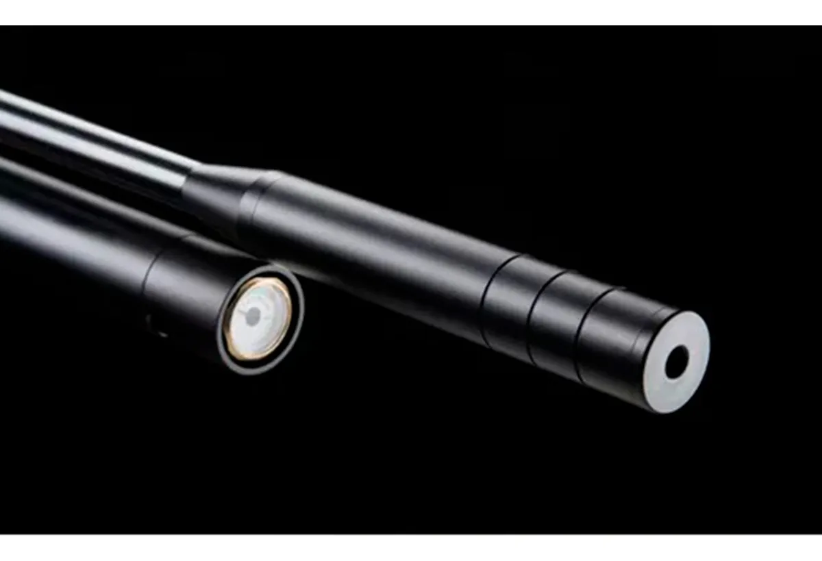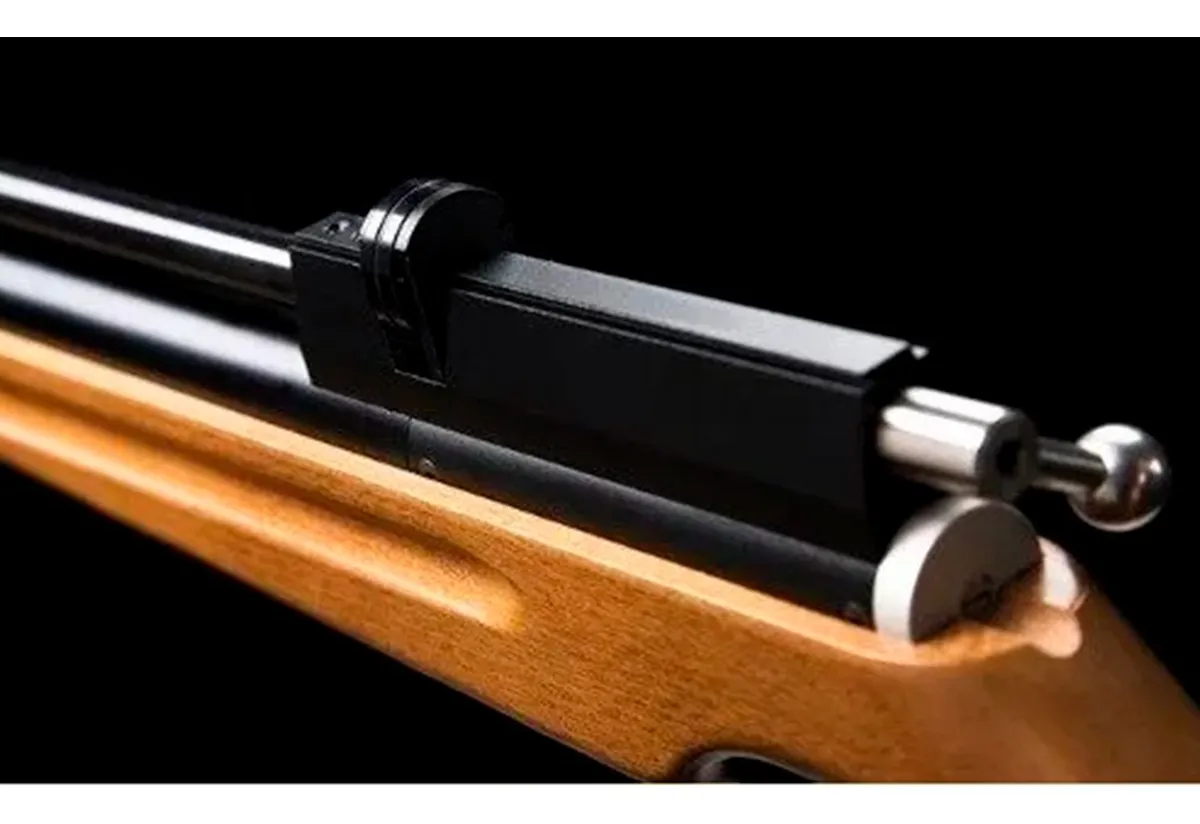 Calibre: 5.5mm Culata de madera lustrada con cantonera de goma Velocidad: 1100 FPS Sistema PCP Multi-tiro a cerrojo Cargador a 11 disparos Cañón mertelado en frío. Largo: 22mm Depósito de aluminio de 250cc Presión máxima: 200Bras/20Mpa Autonomía: 50 disparos Riel para mira telescópica de 11mm Largo total: 1170mm Peso: 3.5kgs Incluye: - Pico de carga foster macho - Moderador
