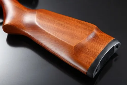 Culata de madera lustrada con cantonera de goma.