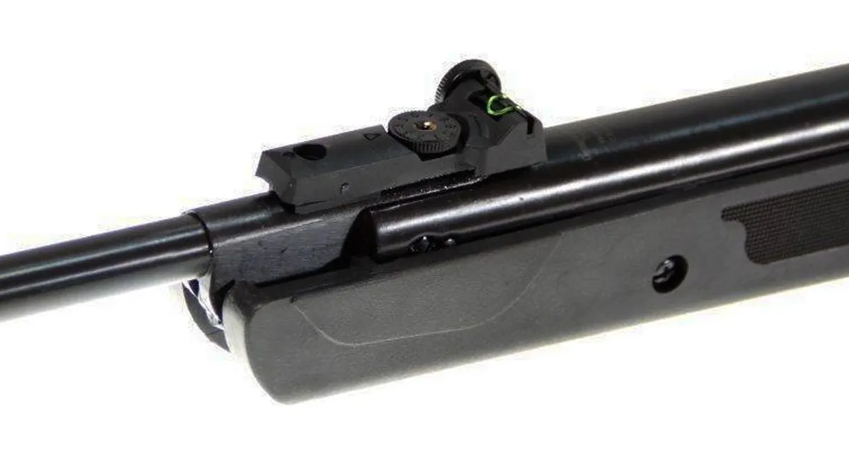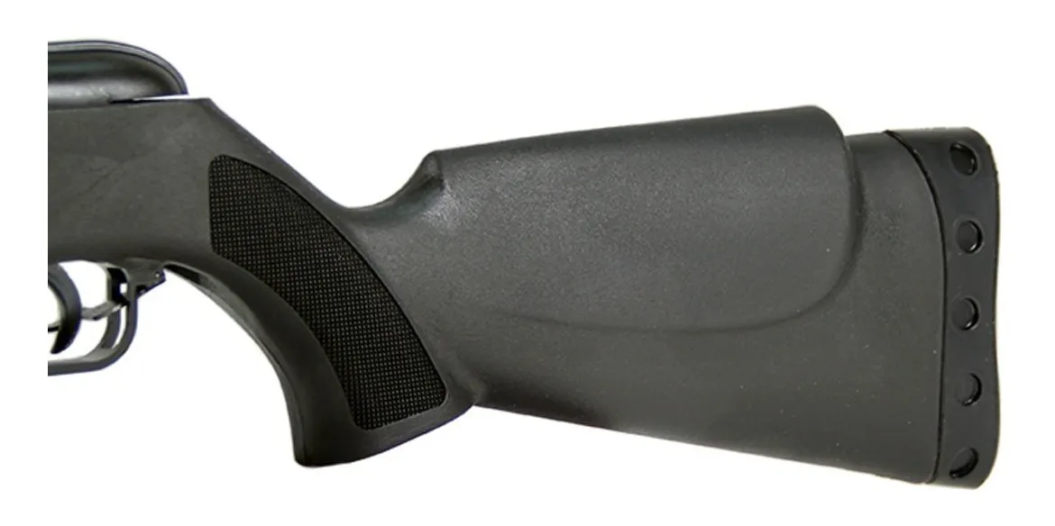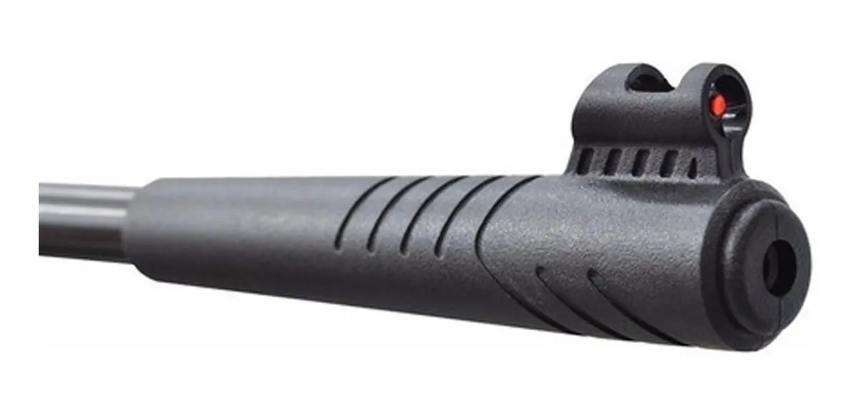 Características Medidas: largo 109 cm Peso: 2.8 kg Calibre: 5.5 mm (.22) Velocidad: 600 FPS Acción: Mono-tiro Capacidad de carga: 1 balín de plomo Alimentación: Resorte por quiebre de cañón Seguro: manual de bloqueo de gatillo Cañón: acero estriado de 45 cm de largo Alcance efectivo: 40 metros Riel para Accesorios: Sí, para adición de mira telescópica.