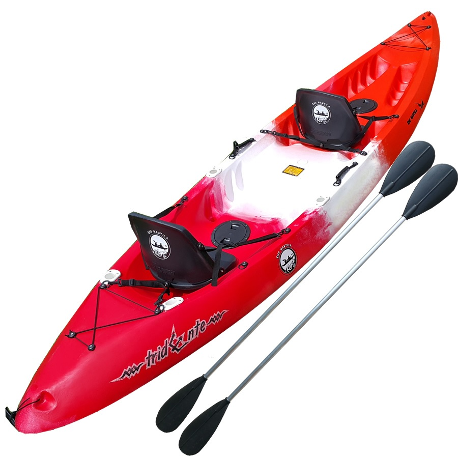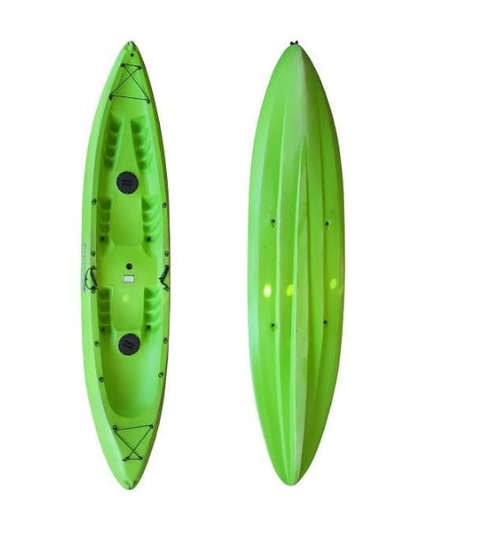 Largo: 3,93m Ancho 0,81m Peso: 32kg Capacidad de carga: 220kg Manijas en proa y popa, babor y estribor. Puede ser utilizado por una, dos o tres personas (dos adultos y un niño ) Palas doble incluídas.