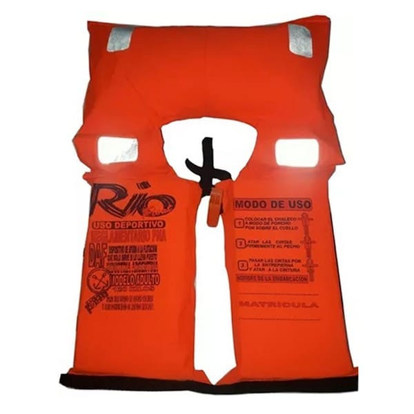 Chaleco aprobado por PNA Uso deportivo Dispositivo que ayuda a la flotacion que solo sirve si lo lleva puesto Para ser usado en aguas calmas y con posibilidades de rapido rescate. Modelo adulto 120 kilos