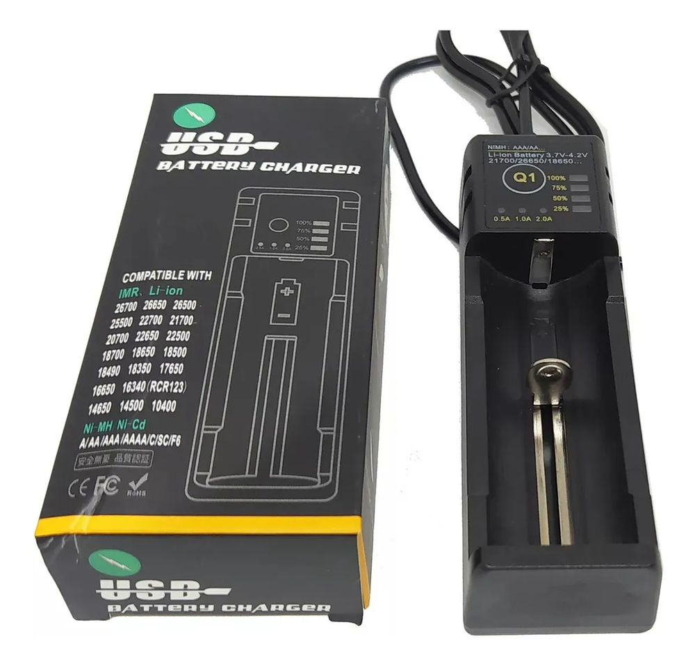 CARGADOR DE BATERÍA USB CON SELECTOR DE AMPERAJE DE CARGA. COMPATIBLE CON IMR Y LI-ION *CAPACIDAD UNA BATERÍA