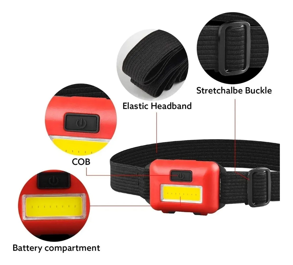 Características: • 3 modos de luz: alta intensidad, baja intensidad y parpadeante. • Requiere 3 pilas AAA (no incluidas). • Resistencia al agua. • Vincha elástica ajustable. • Botón para encendido y cambio de modos de luz. • Diseño ligero y cómodo.